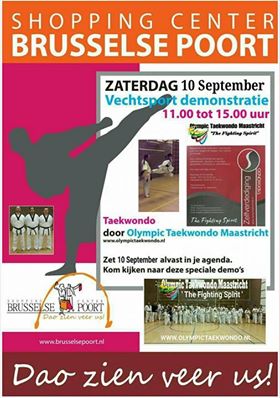 04 Sep2016 10 september 2016 / Demo Brusselsepoort. 04 September 2016. Zaterdag 10 september 2016 zijn we te zien in de Brusselsepoort met een demo! -Olympic Taekwondo Maastricht- (Thx. Dyon!). Print Email < Prev Next >